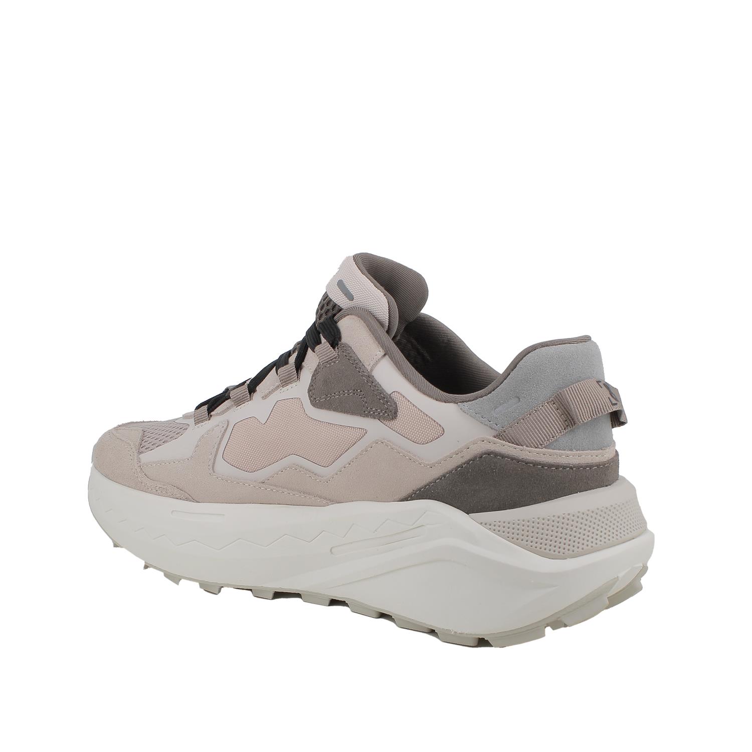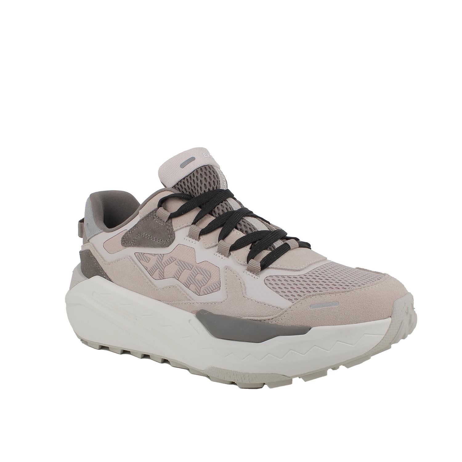 Discover our men’s low-cut athleisure sneaker. The multilayer design blends contrasting textures and materials to create a bold, dynamic graphic effect, while the oversized logo adds a distinctive street-style touch.