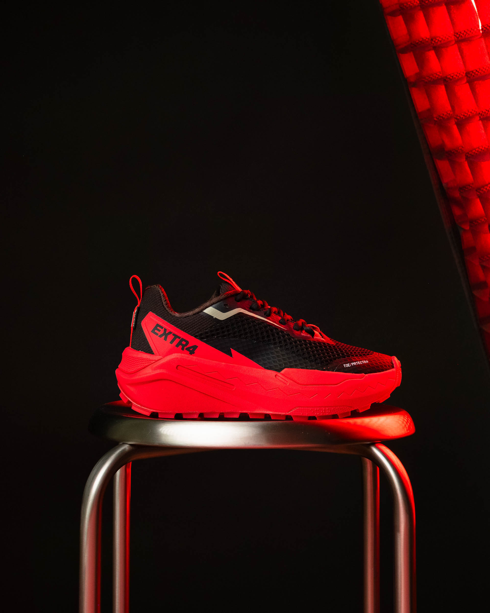 Il logo EXTR4 e i dettagli tecnici sottolineano il carattere sportivo e deciso di una scarpa pensata per chi ama vivere fuori dagli schemi.